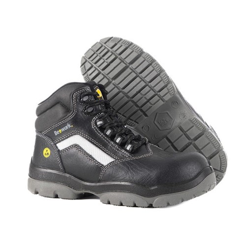Corte: Piel flor vacuno hidrofugada, grosor 1,8-2,0 mm; cuello y lengüeta (en fuelle) de poliuretano de alta resistencia sobre espuma de látex.Forro: Tejido 3D "Airmesh" acolchado con gran transpirabilidad y resistencia a la abrasión.Sistema de cierre: Cordones.Puntera: No metálica de fibra de vidrio; amagnética y atérmica; resistente impacto 200J y compresión 15kN.Plantilla antiperforación: No metálica PS; flexible; resistente 1100N.Plantilla confort: Termoconformada de EVA; extraible; antiestática ESD; antibacteriana y fungicida.Suela: Poliuretano antiestático doble densidad; resistente a hidrocarburos; nivel de delizamiento SRC.Mondopoint 13.