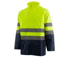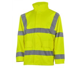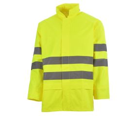 Chaqueta de alta visibilidad compuesto por chaqueta con capucha y pantalones.100% poliéster / PU.